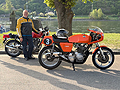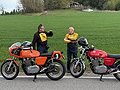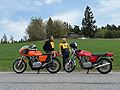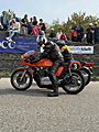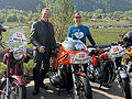 Der 39. Seiberer Bergpreis wurde heuer mit 280 Fahrern in 17 verschiedenen Klassen ausgetragen. Am Start waren Andreas Bachtrögler und Gert Schnögl, beide auf LAVERDA 1000 3CL und Thomas Kollingbaum mit seinem JZR Threewheeler mit GUZZI Motor. Der erste Lauf wurde um 10 Uhr bei sonnigem Wetter gestartet. Mittags setzte dann Regen ein, so daß der 2. Lauf auf nassem Asphalt absolviert werden mußte. |
